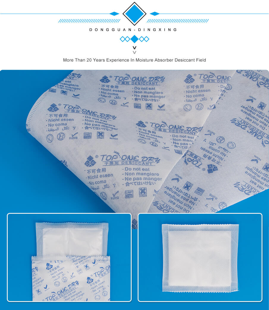干燥劑外包裝印刷采用符合FDA 21CFR相關(guān)要求的水性油墨印刷,安全可靠,文字清晰不掉色。