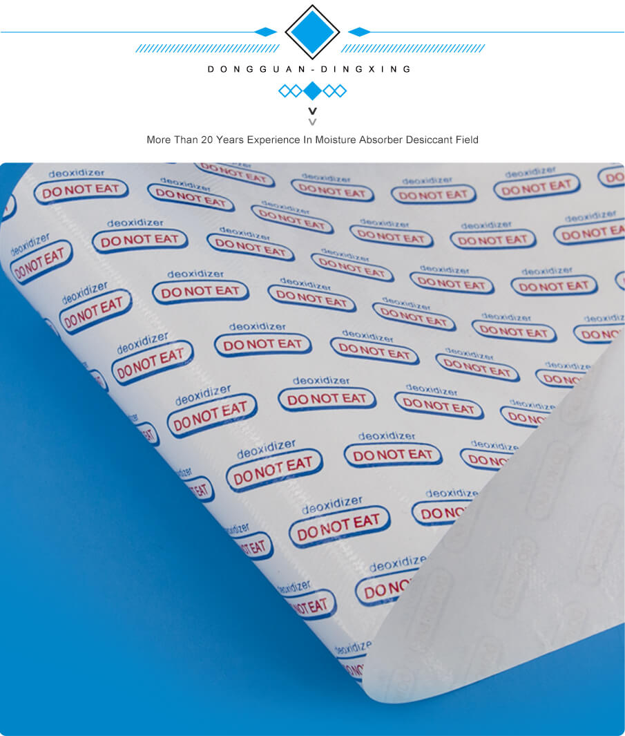 脫氧劑外包裝印刷采用符合FDA 21CFR相關(guān)要求的水性油墨印刷,安全可靠,文字清晰不掉色。